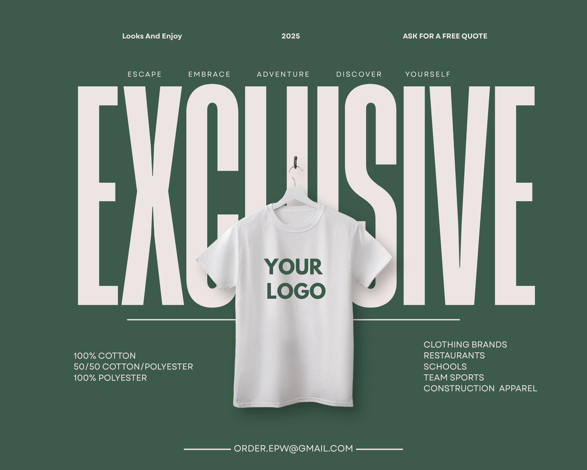 Bring your vision to life with high-quality screen printing on T-shirts, hoodies, shorts, and more. Perfect for businesses, events, holidays, or personal projects. Durable prints, vibrant colors, and professional results—every time